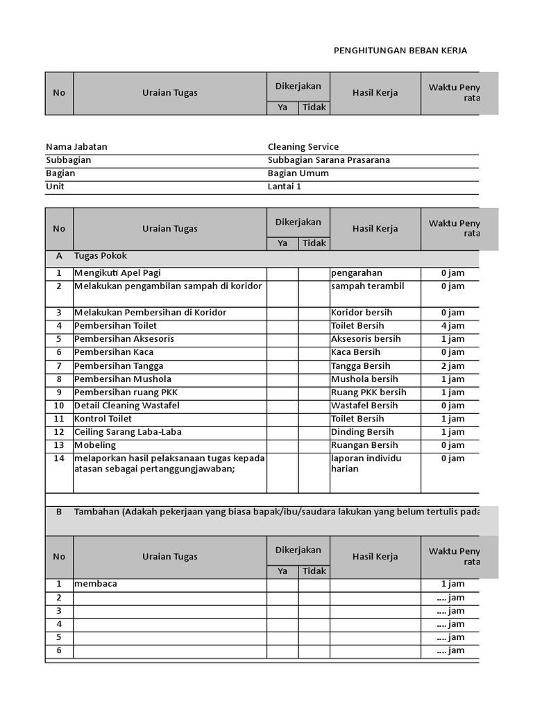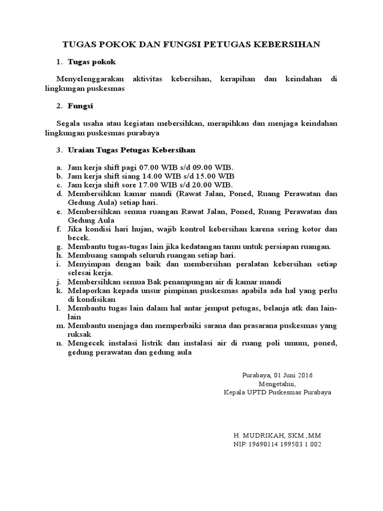 Uraian tugas cleaning service kantor. Check spelling or type a new query. We did not find results for: Maybe you would like to learn more about one of these?